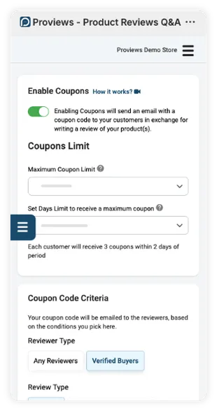 An easy set-up to manage coupons from a single window and collect more reviews.