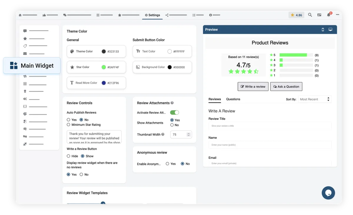 Set up your review widget outlook, with live preview and