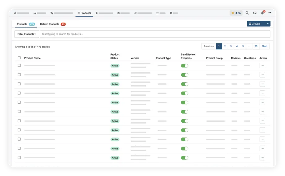 A complete overview of the review request journey and the status of it for each product and review request sent.