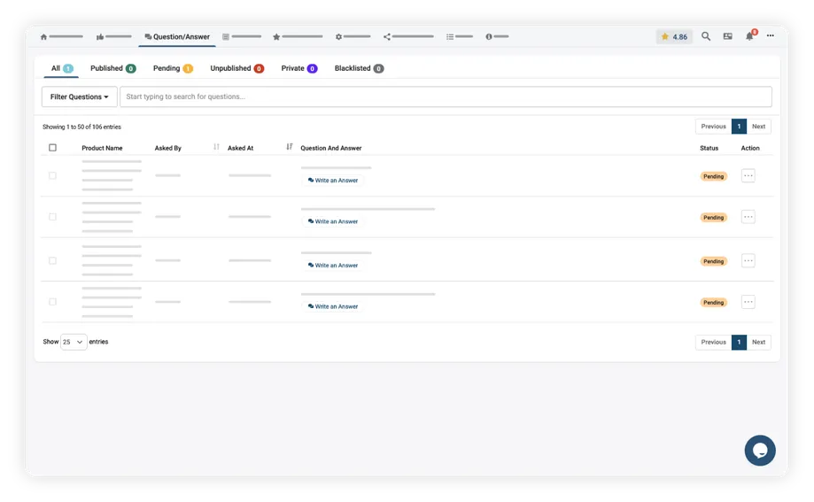 Manage Questions and Answers from a single place with easy navigation options.