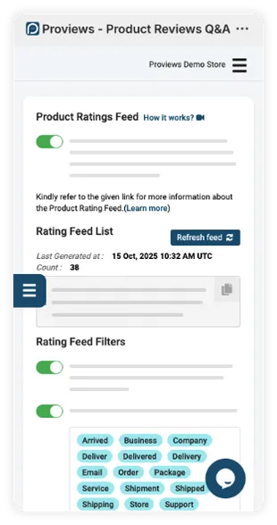 Generate product rating feed for and market your product with reviews.